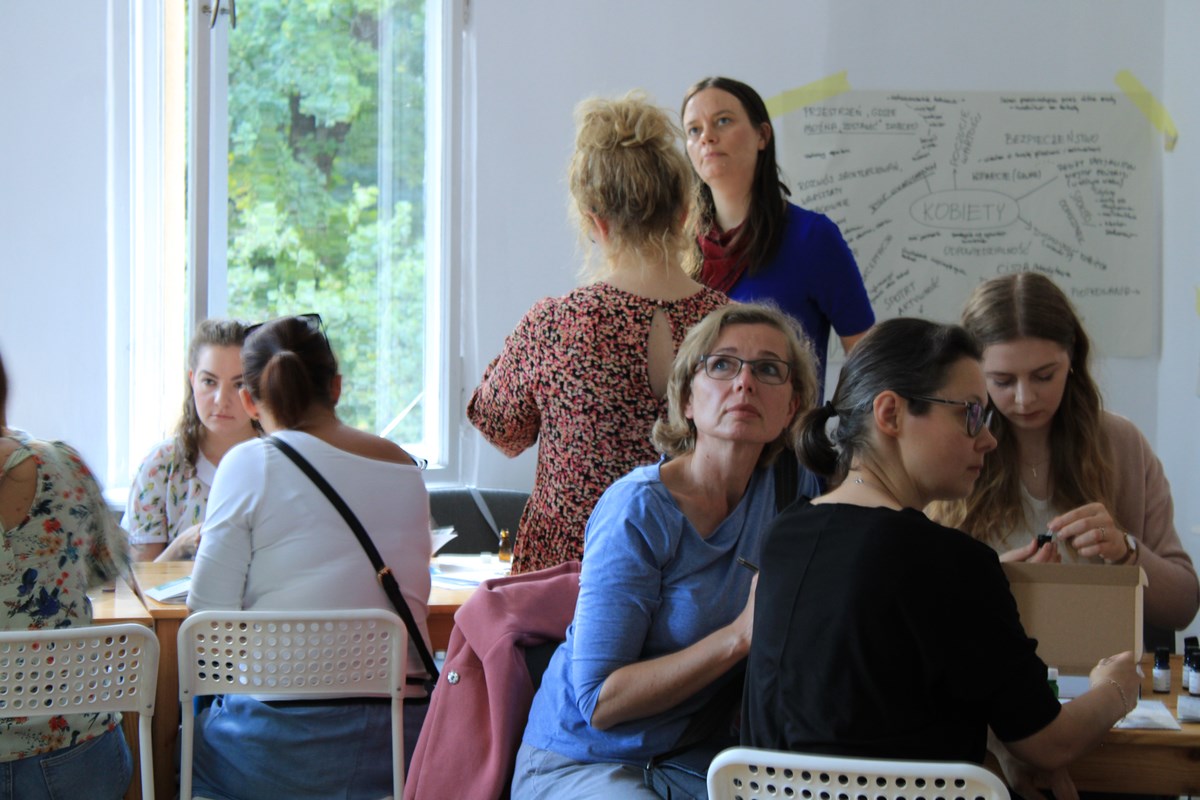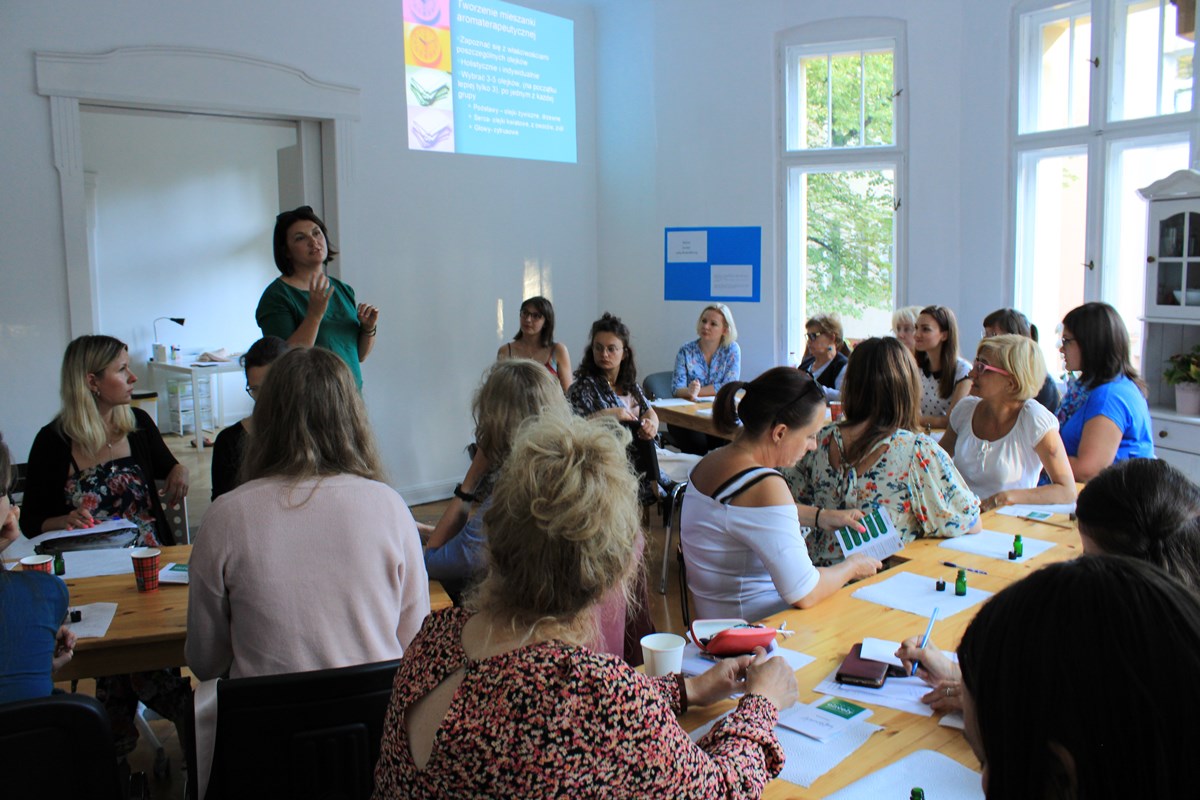 Bardzo merytorycznym wstępem, z odniesieniami do badań naukowych, Prowadząca wprowadziła nas w świat aromaterapii i jej powiązaniami z układem hormonalnym kobiet. Niejeden chemik, lekarz czy farmaceuta mógłby wyciągnąć wiele przydatnych informacji z tej prelekcji. Jednak dzięki przystępnej formie przekazu, informacje były zrozumiałe dla każdej uczestniczki warsztatów. Wysoka wartość merytoryczna, poparcie informacji nauką - to szczególne atuty, jakie były podkreślane w ankietach po spotkaniu. Trudno się dziwić - dr Ewelina Kubacka ma szeroką wiedzę, którą wykorzystuje w rozwijaniu własnej marki - Elively.